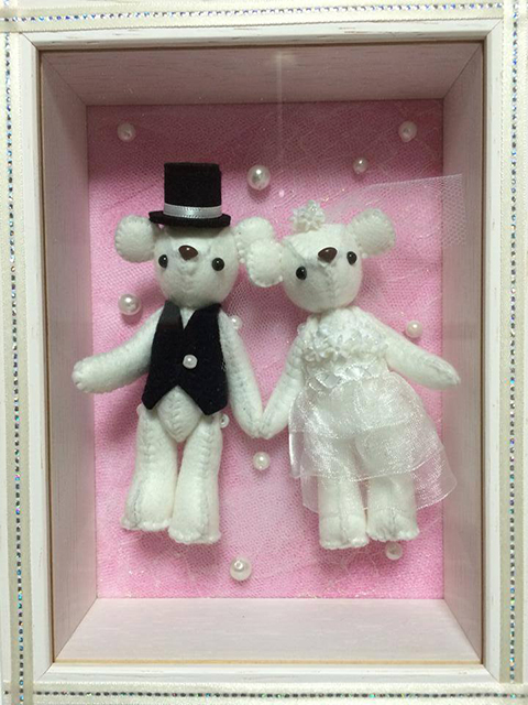 伊藤フェルト作品は、大人向けにブライダルサポートとしてのテディベアだったり、ケーキだったり希望に応じてオーダーを受けて制作していきます。ブライダル以外でも、もちろんお受けします。1点1点手縫いで作っているので、だからこそできるリクエストには応えます!それから、これまで通り、子ども達向けのモノも作ります。